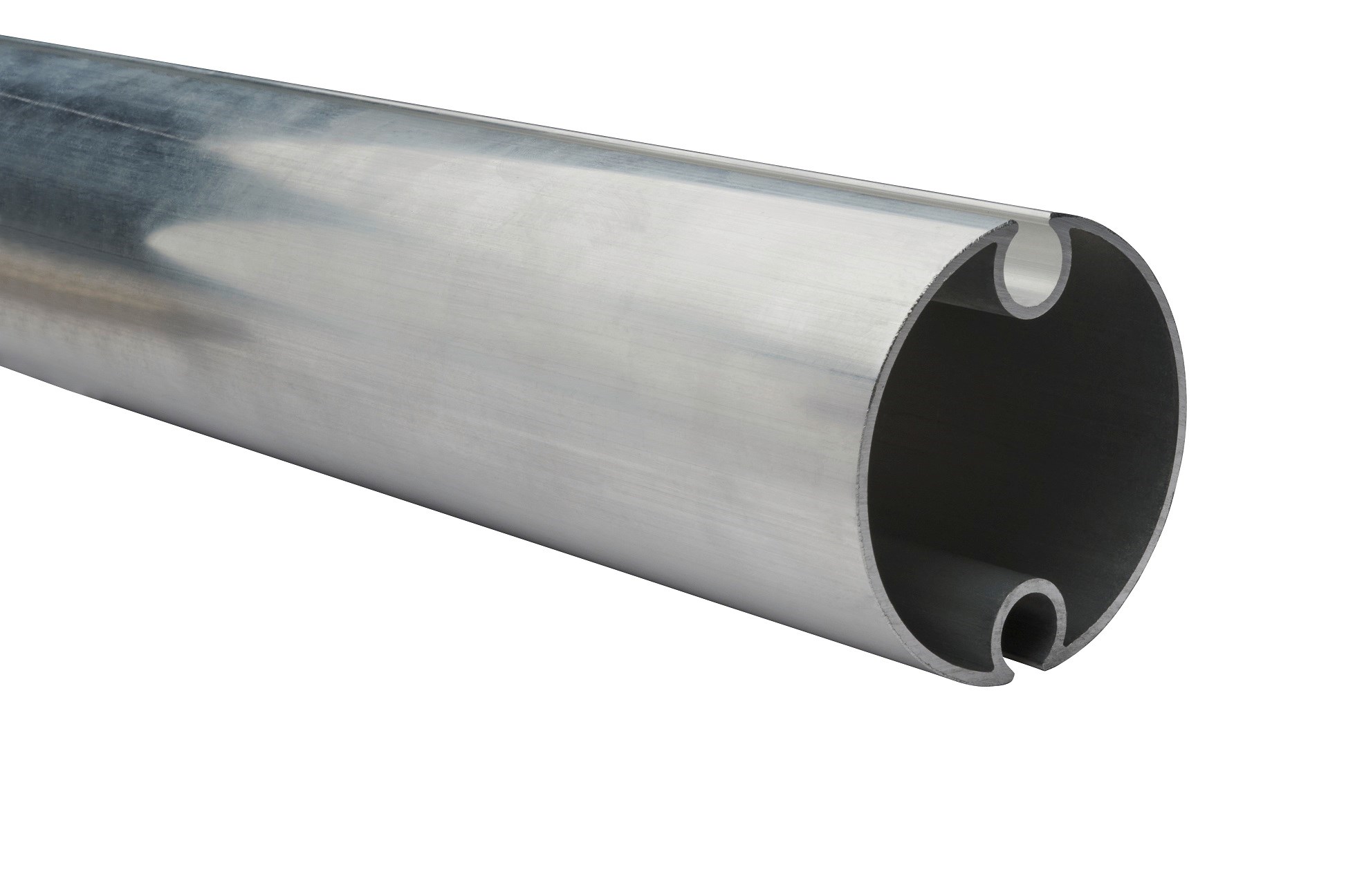 11859 - Aluminiumwickelrohrprofil mit 2 Kedernuten. D= 60 mm. Alu blank. L= 6.00 m für Keder D= 7.5-10 mm