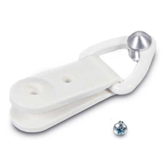 11724 - Einschlagclip mit Alugleiter für Alukederschienen mit Kedernut 7-10mm. Kunststoff weiß. L= 62mm -Schnellmontage mit Hammer und Senkschraube zur Sicherung-