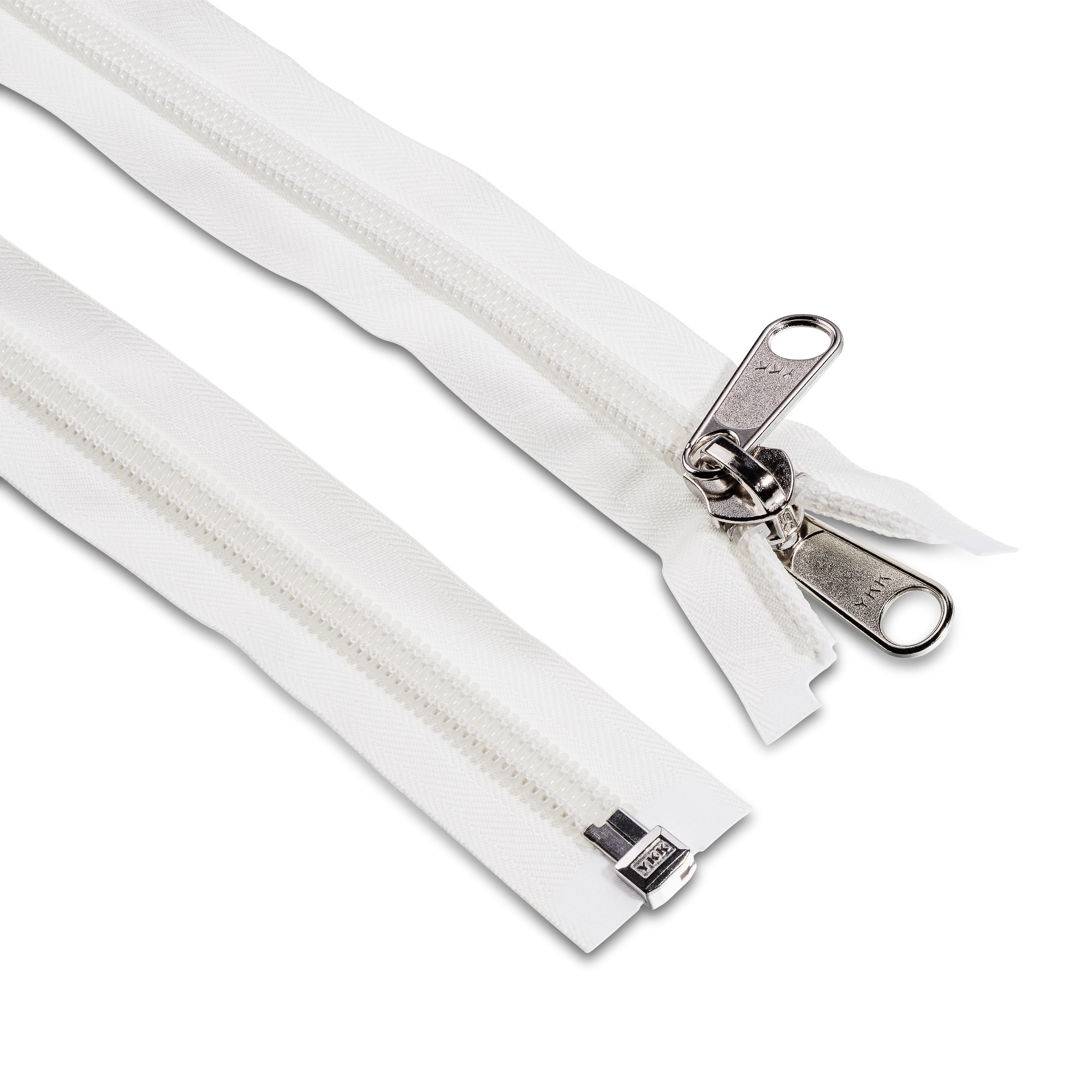 11115 - Reissverschluss YKK. L= 240 cm. teilbar. weiss 10 er Kette mit Doppelschieber. vernickelt