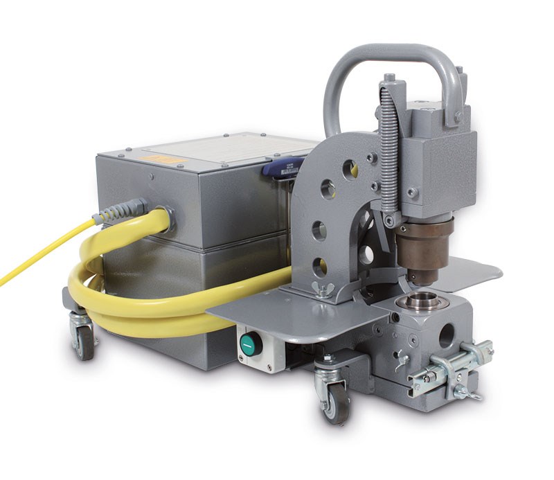 11296 - Öseneinsetzmaschine ´ HT-10-HYDRAULIK´. elektrohydraulische Öseneinsetz- und Nietmaschine mit 5 t Stanzdruck. 230 V/50HZ. Ausladung 80 mm. Gesamtgewicht: 45 kg (Bügelgewicht 9 kg)